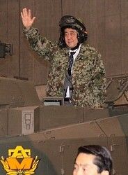 >首相は自衛隊最高指揮官だが、戦車に乗るのは異例。